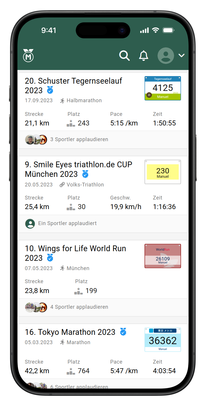 Jeder deiner absolvierten Wettkämpfe verdient es, gesehen und geteilt zu werden.