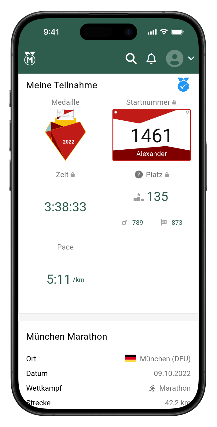 Bei Medal Monday kannst du alle deine Wettkämpfe, die du je bestritten hast, an einem Ort sammeln. Zeitlos, digital und immer in deiner Hosentasche.